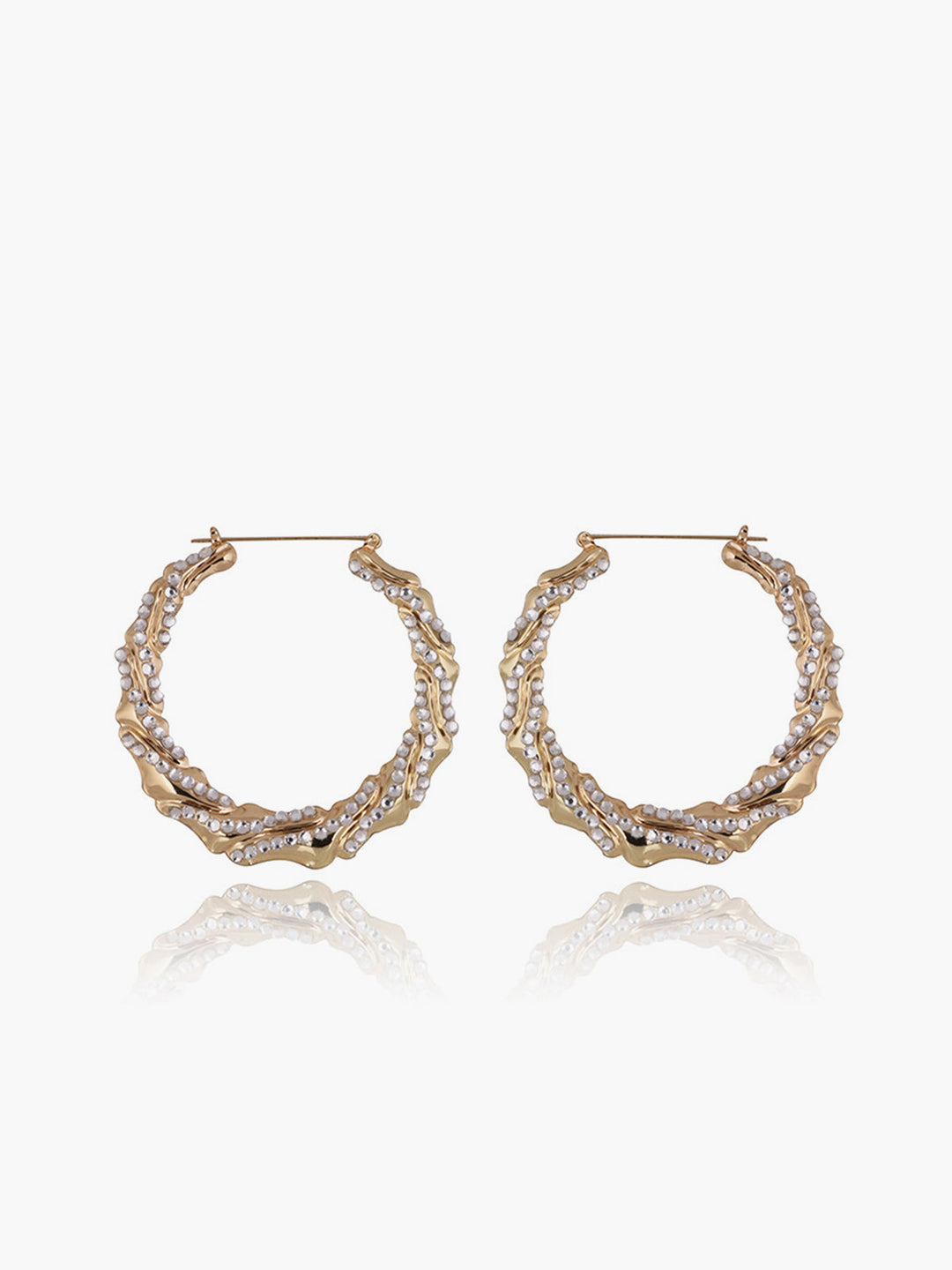 Üç Boyutlu Metal Çiçek İnci Küpeler Altın