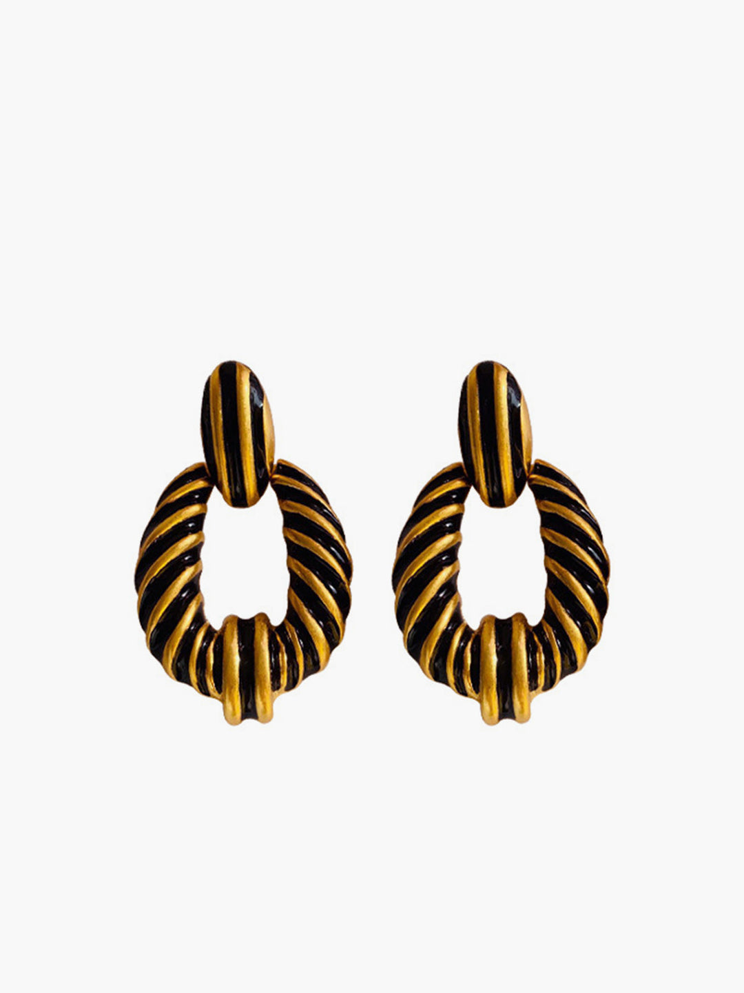 Nostaljik Dokuma Kalın Halka Küpeler Koyu Kahverengi