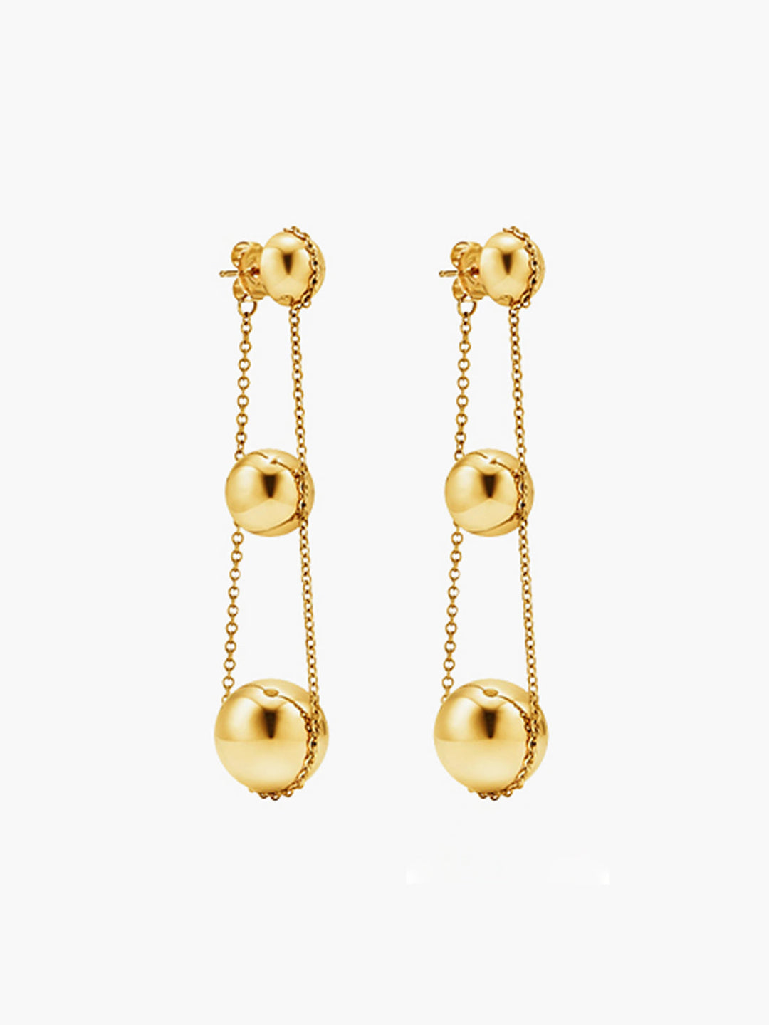 İçi Boş Boncuklu Zincirli Küpe Altın