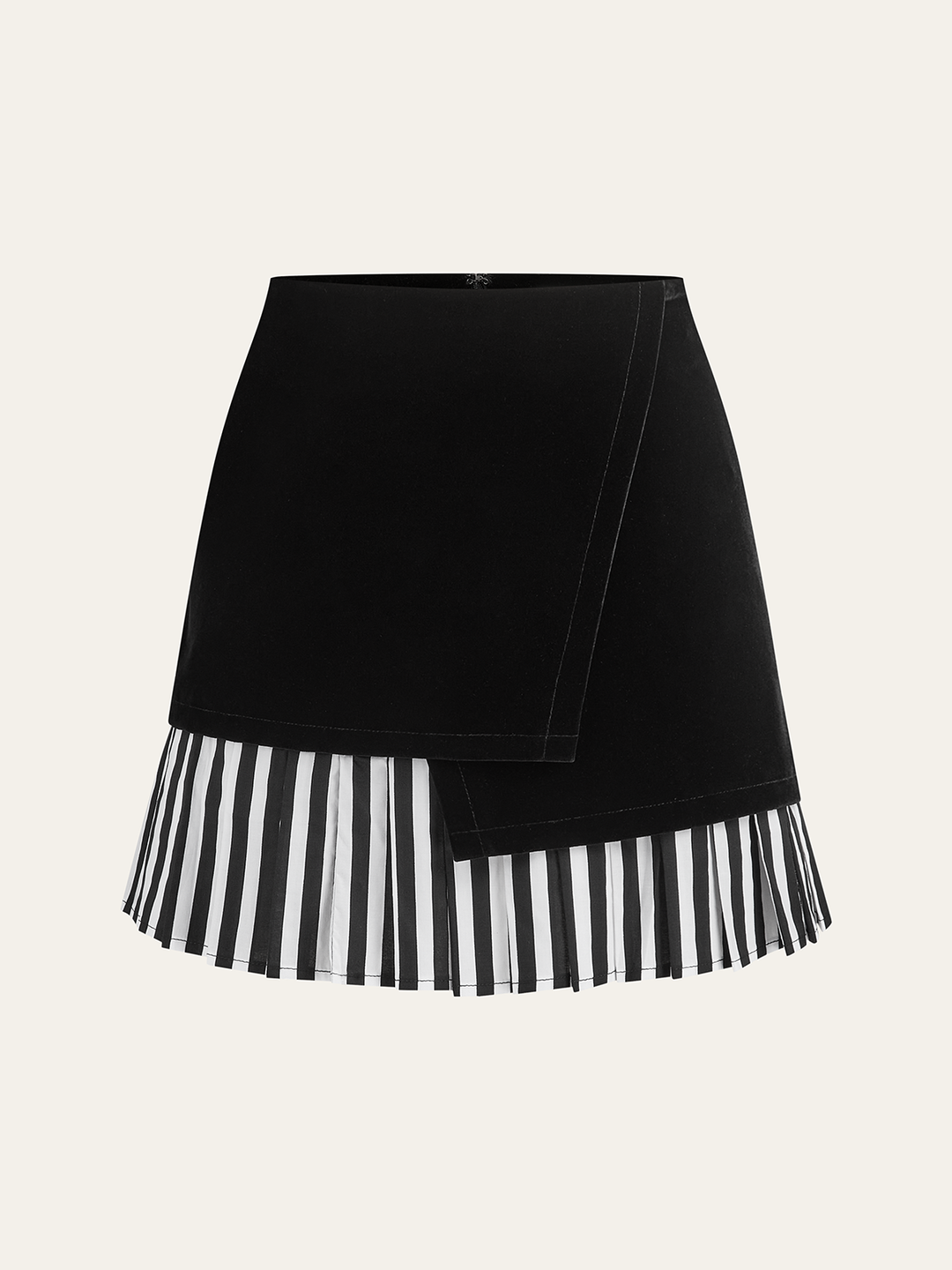 Asimetrik Kontrastlı Çizgili Mini Etek Siyah