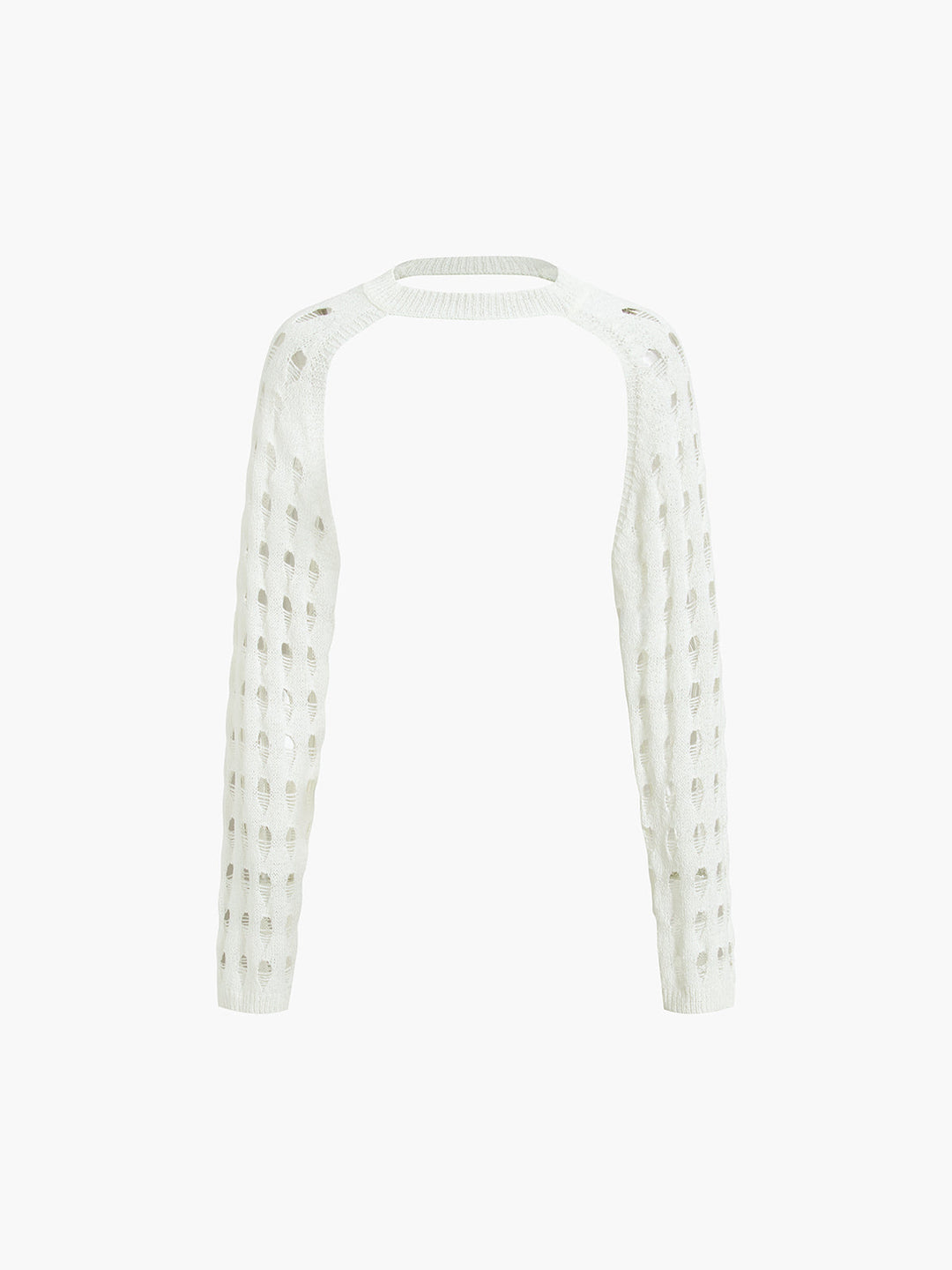 Açık Yaka Düğmeli Örgü Kazak Beyaz