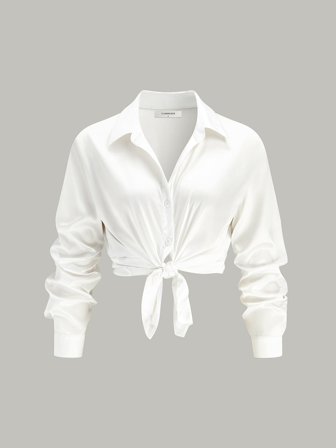 Uzun Kollu Düğmeli Gömlek Yayılan Yaka Beyaz