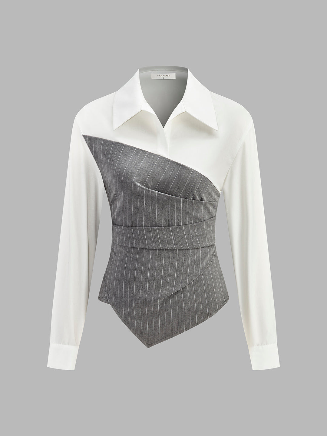 Asimetrik Renk Bloklu Çizgili Gömlek Gri