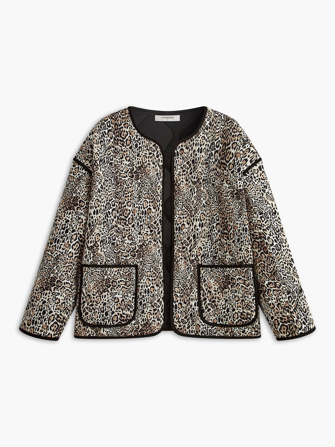 Kontrast Dikişli Leopar Desenli Kış Kabanı Çok Renkli