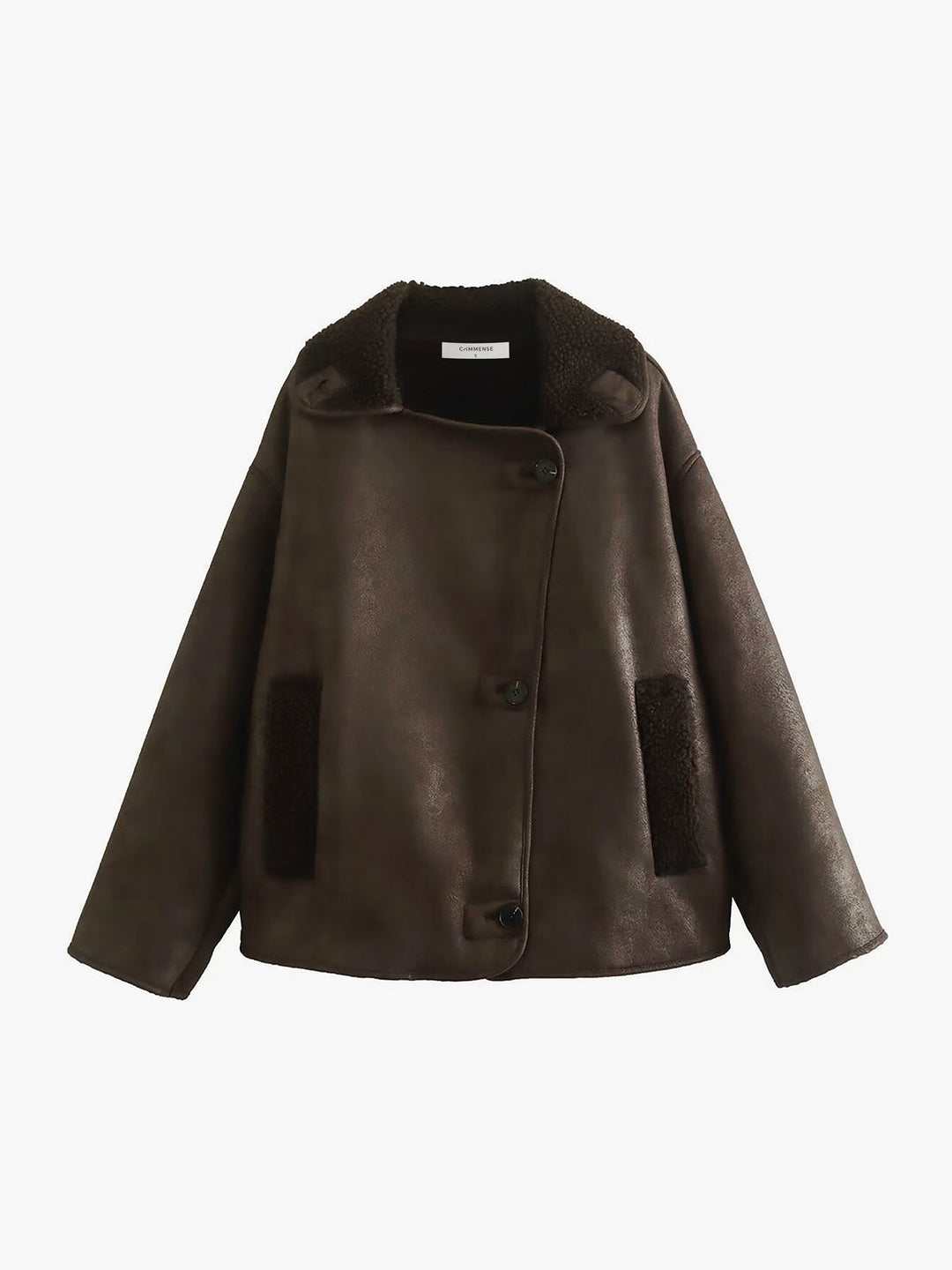 Koyun Postu Ceket Ön Cepli Tek Düğmeli Açık Kahverengi