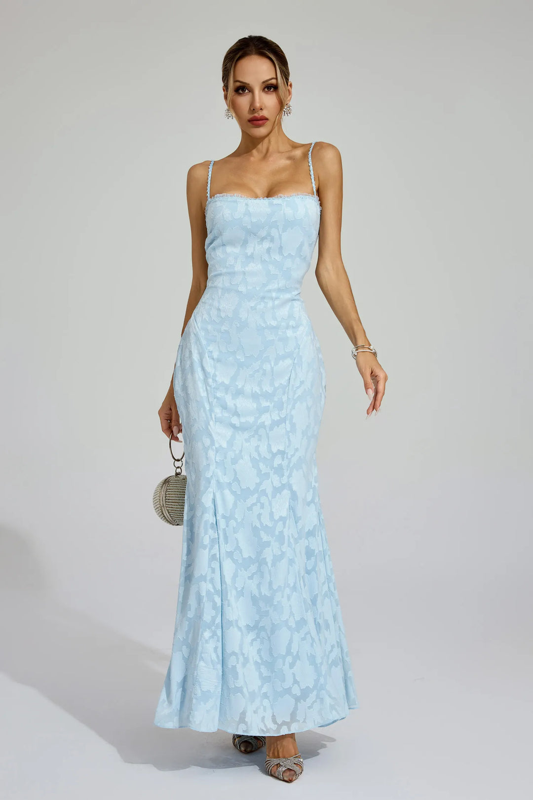 Anita Dantel Detaylı Jakarlı Maxi Elbise Mavi