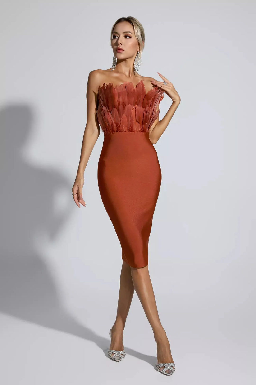 Venelit’in özenle tasarladığı ve özel anlarınızda kendinizi güçlü hissettirecek zarafet dokunuşuyla Elianna Koyu Kahverengi Tüy Midi Elbise, stilinize premium bir dokunuş katıyor. E lianna Koyu Kahverengi Tüy Midi Elbise, hayal gücünün ötesinde, büyüleyici bir elbisedir. Rahat bandaj, straplez tüy detaylı bir beden ile süslenmiş...- 4,431.00TL