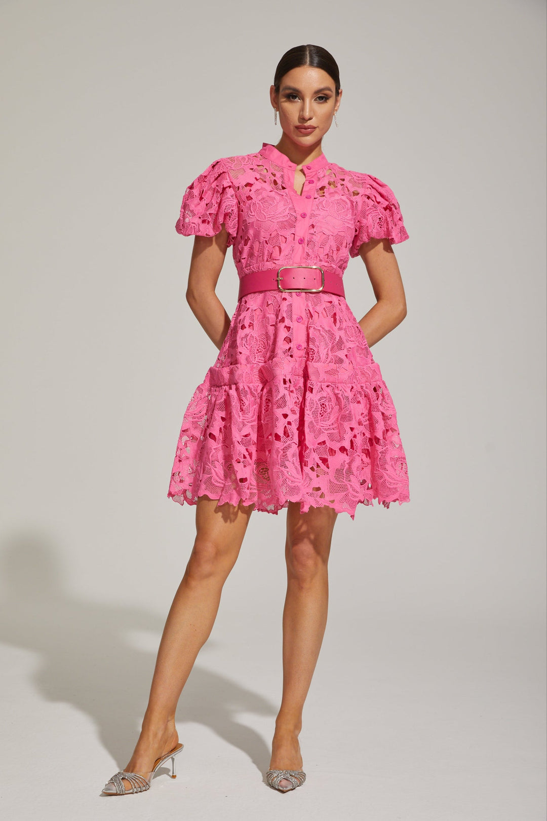 Eléonore Dantelalı Kuşaklı Elbise Pembe