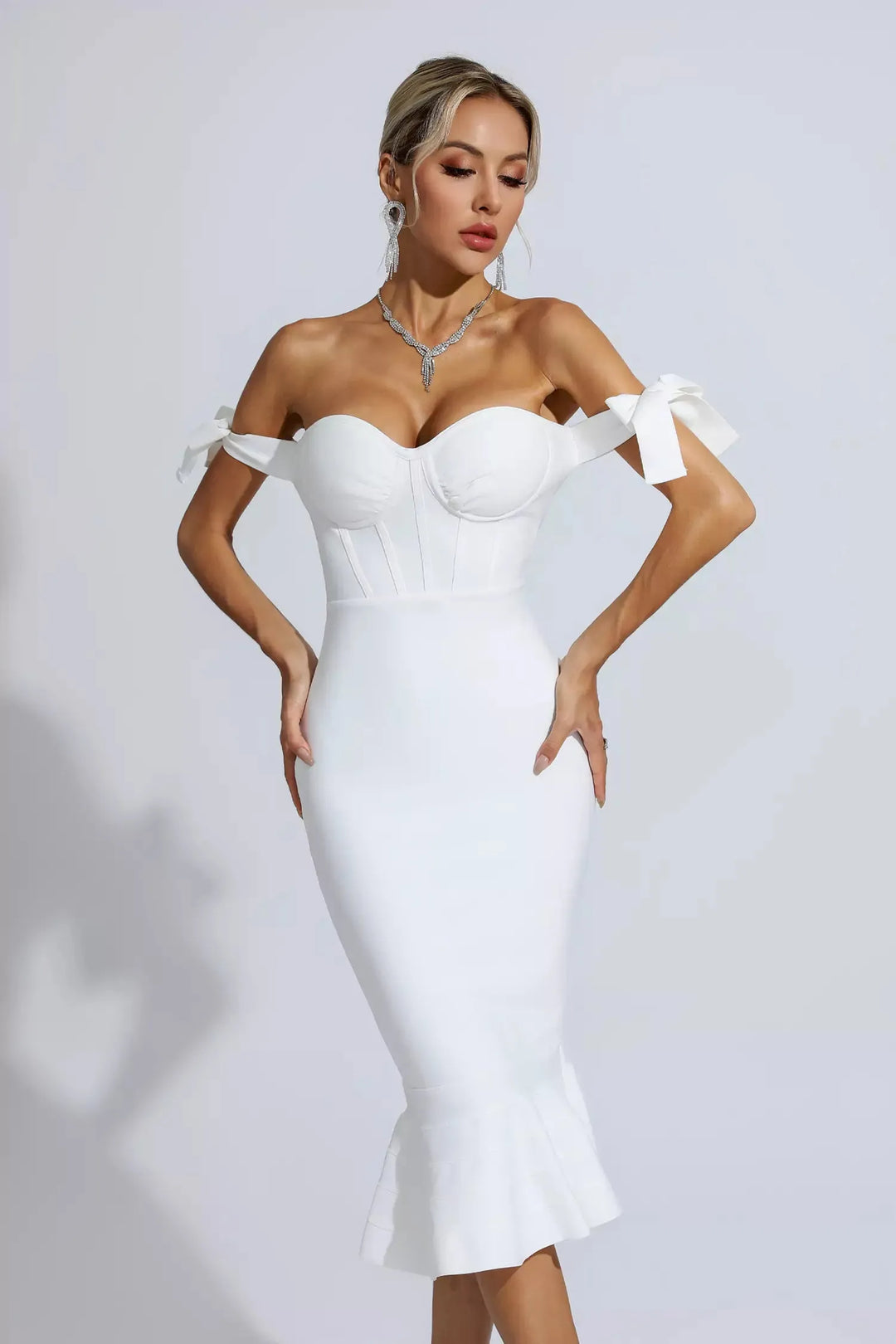 Miras Beyaz Deniz Kızı Midi Elbise Beyaz