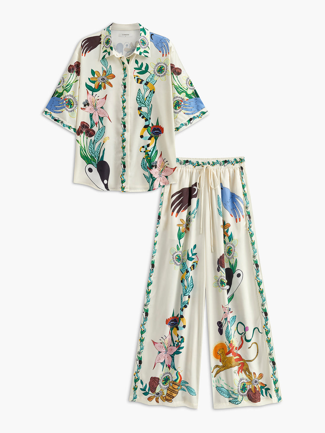Çiçek Desenli Pantolon Takımı Çok Renkli