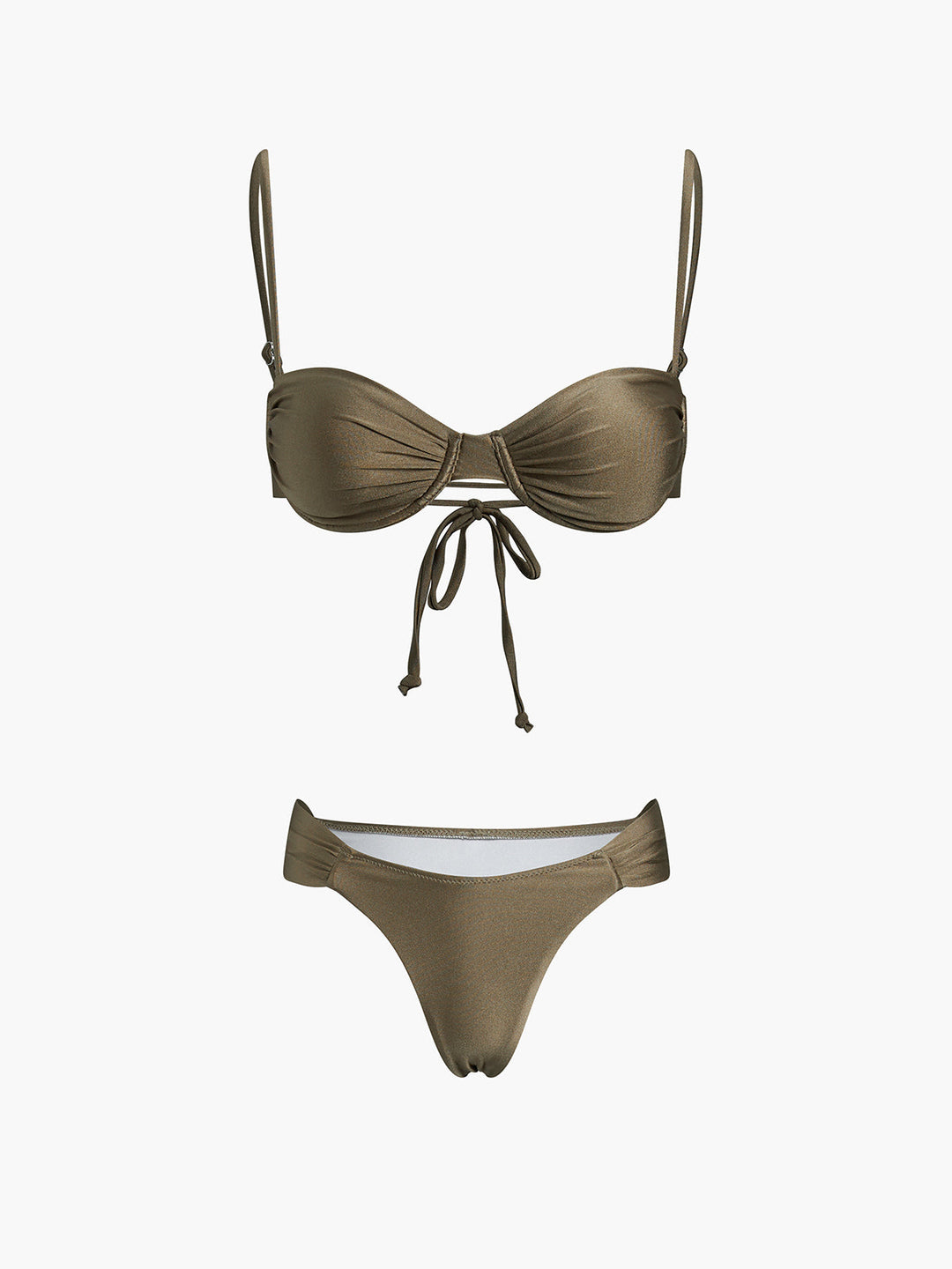 Düz Kravatlı İki Parçalı Mayo Açık Kahverengi