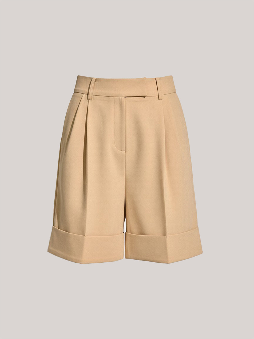 Kırışık Dokulu V-Yaka Şort Takımı Açık Kahverengi