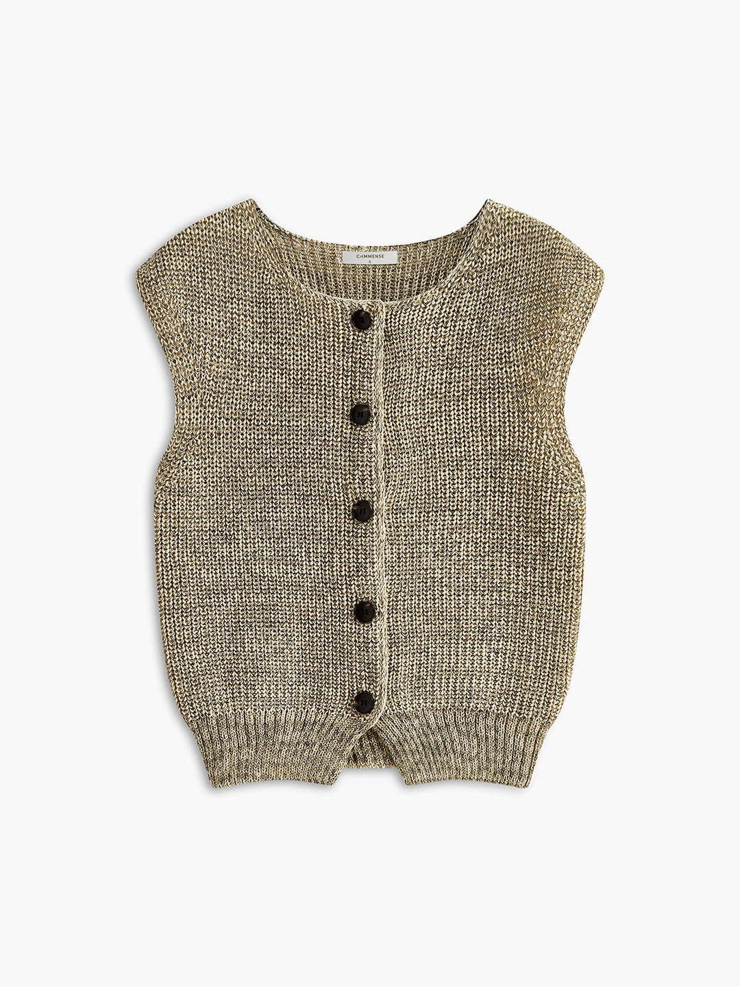Metal Düğmeli V Yaka Örgü Yelek Siyah