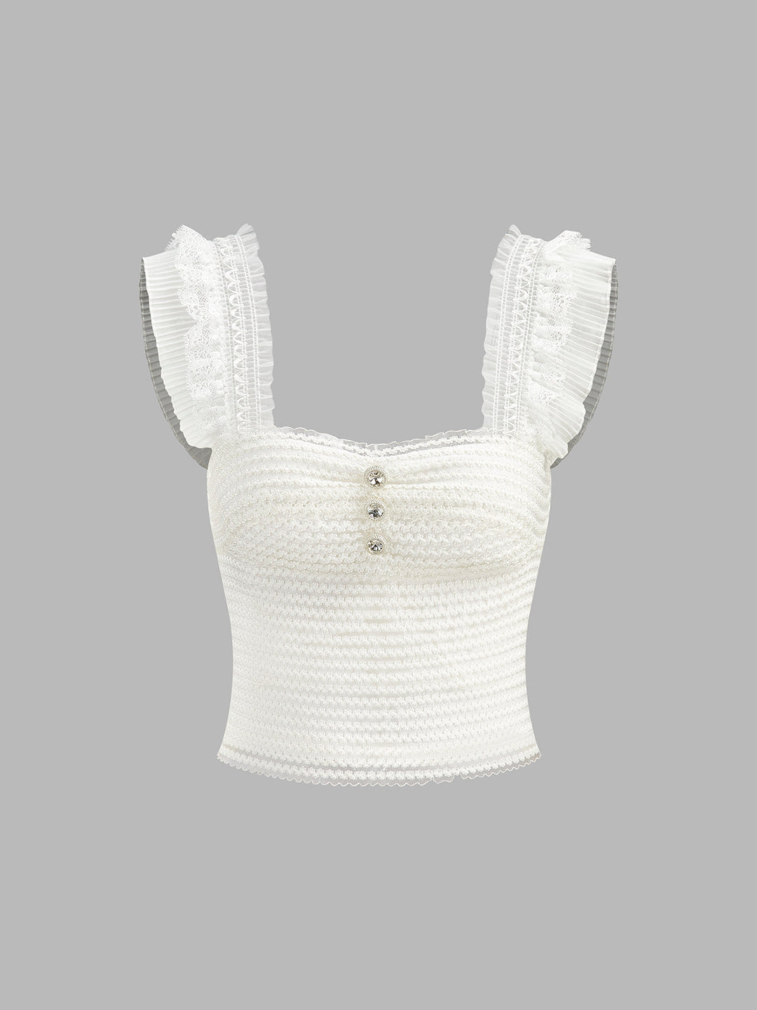 Fırfırlı Askılı Düğmeli Bluz Beyaz