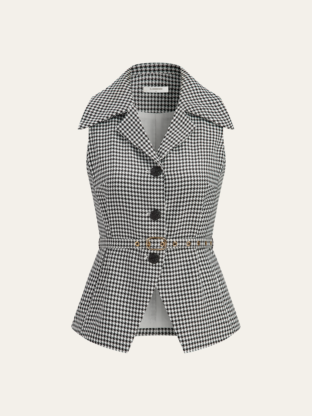 Damat Desenli Kemerli Yelek SiyahveBeyaz