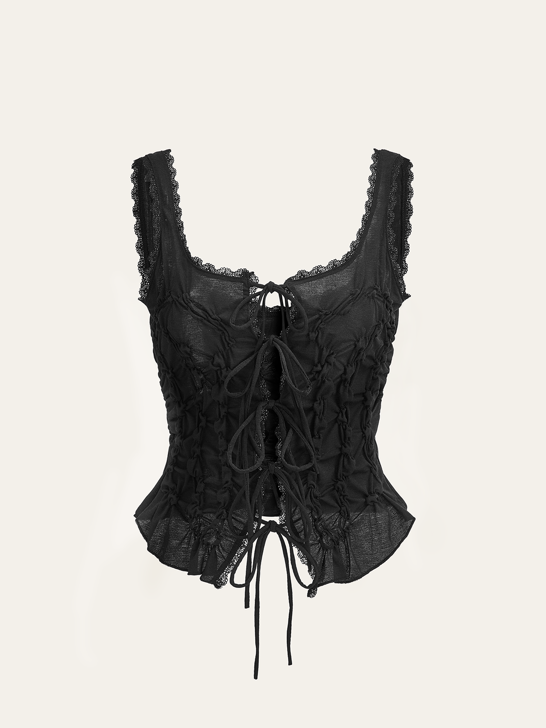 Dantel Kenarlı Yarı Şeffaf Korse Üst Siyah