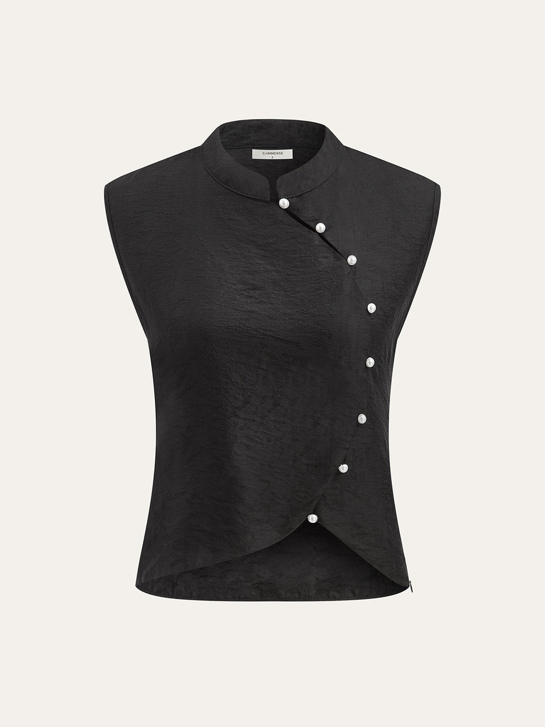 Asimetrik İnci Düğmeli Yelek Siyah
