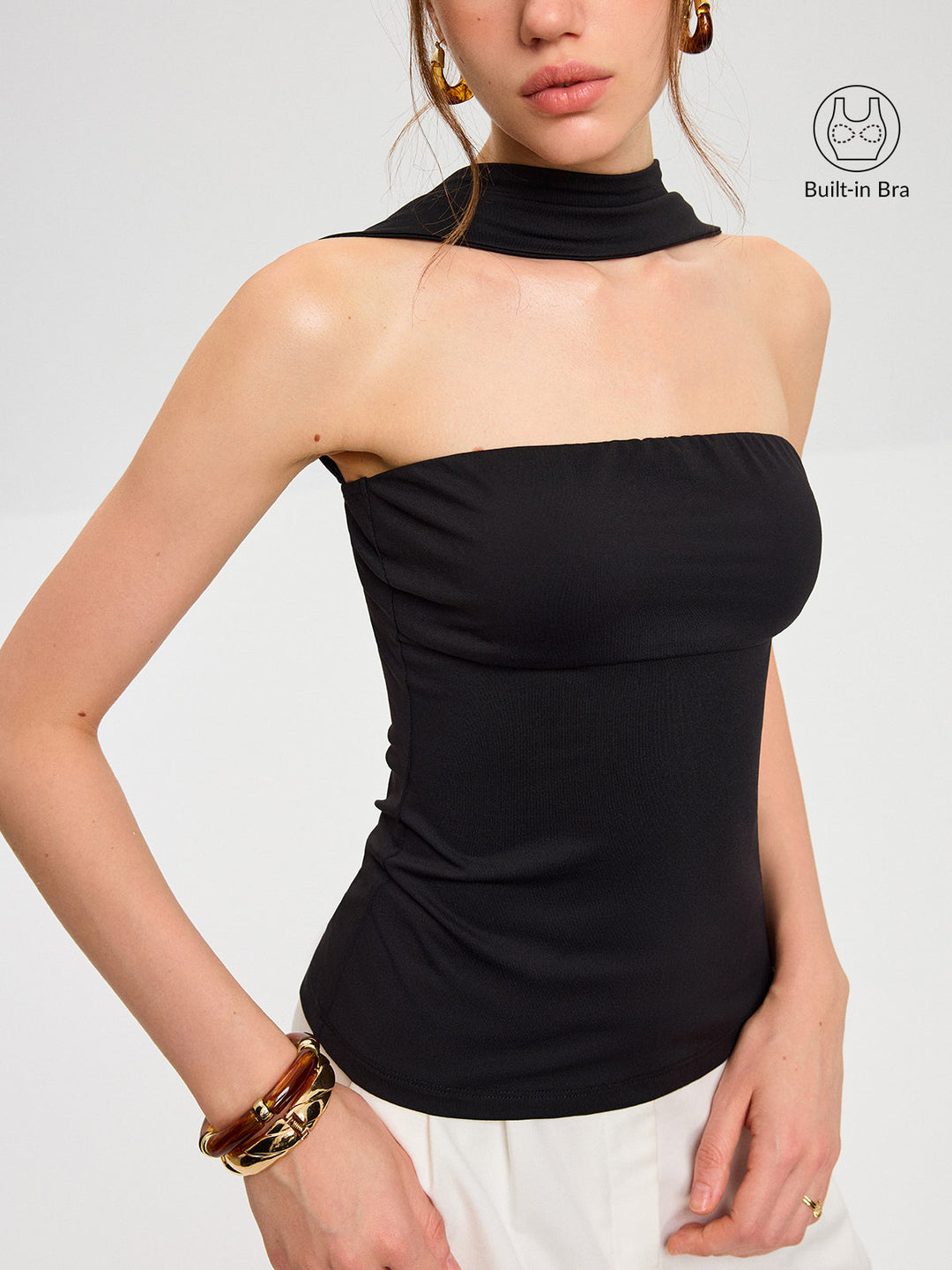 Sütyensiz Sırt Dekolteli Halter Yaka Üst Siyah