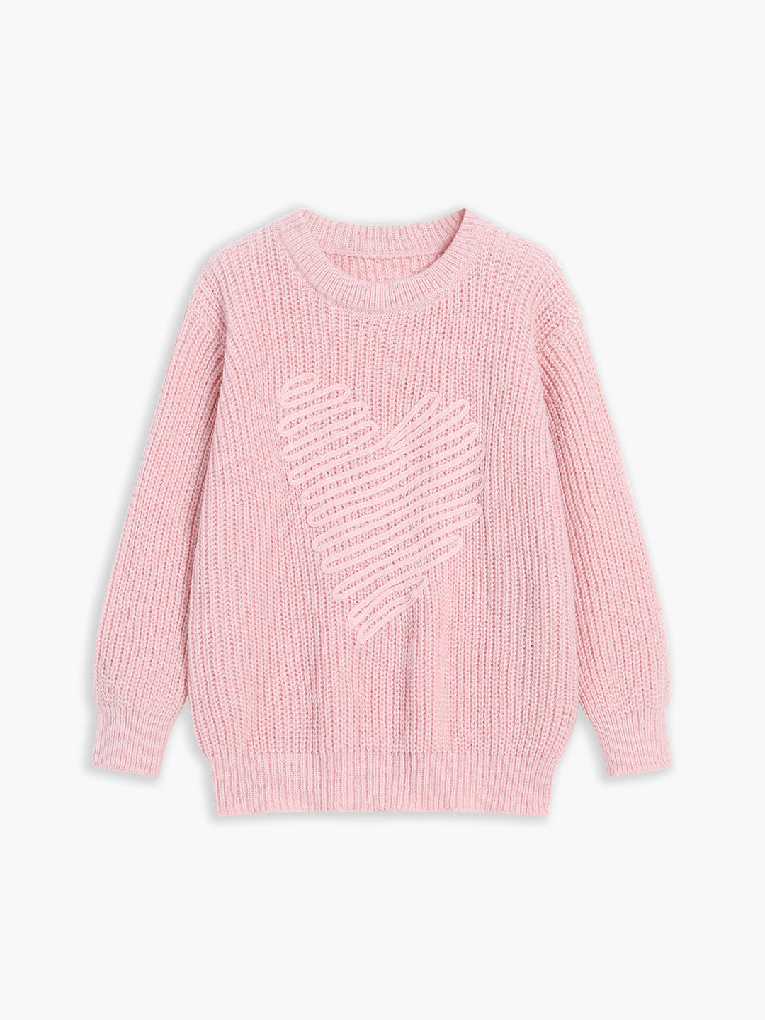 Meraklı Kalp Bol Kesim Kazak Pembe