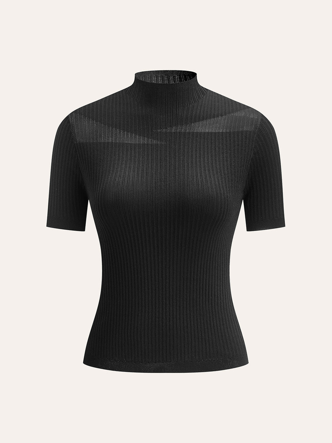 Yarı Şeffaf Ribana Örgü Üst Siyah