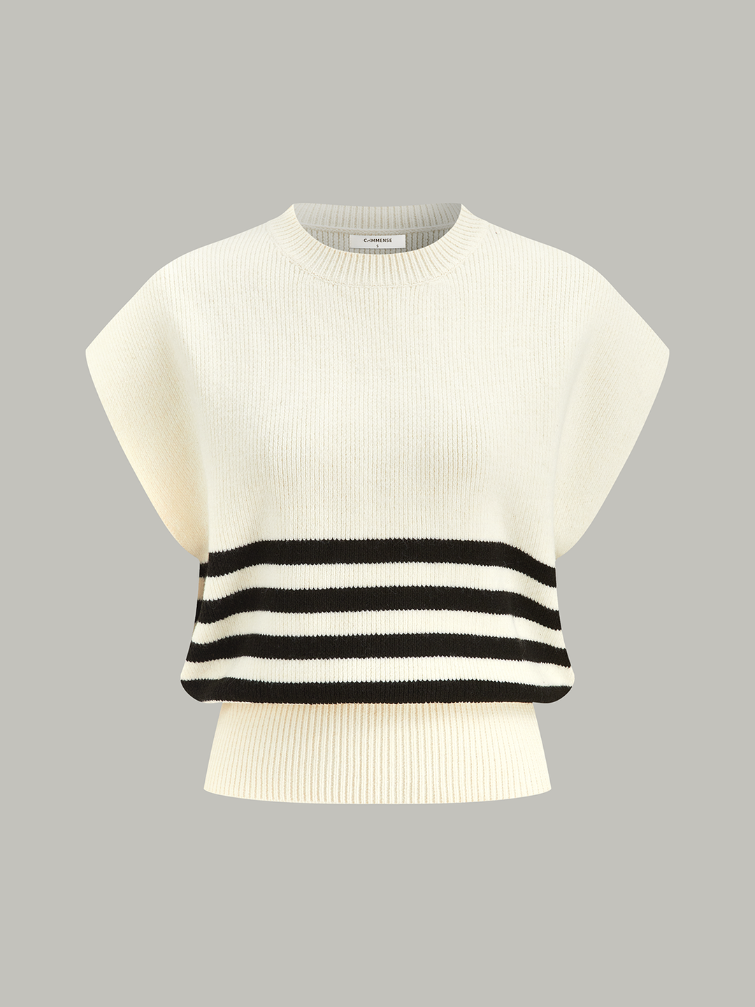 Kablo Örgü Detaylı Çizgili Yelek Off-White