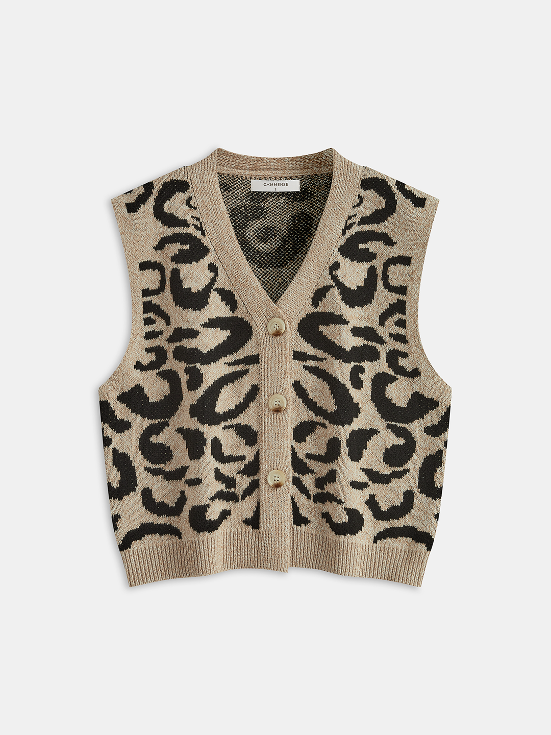 Dekoratif Düğmeli Tığ Örgü Yelek Bej