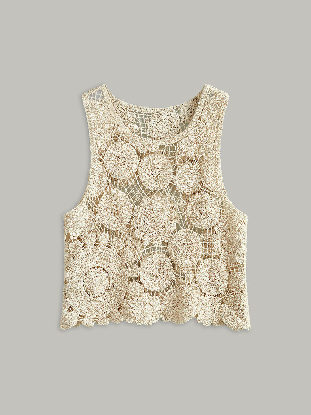Yarı Şeffaf Kroşe Dantel Bluz Kayısı