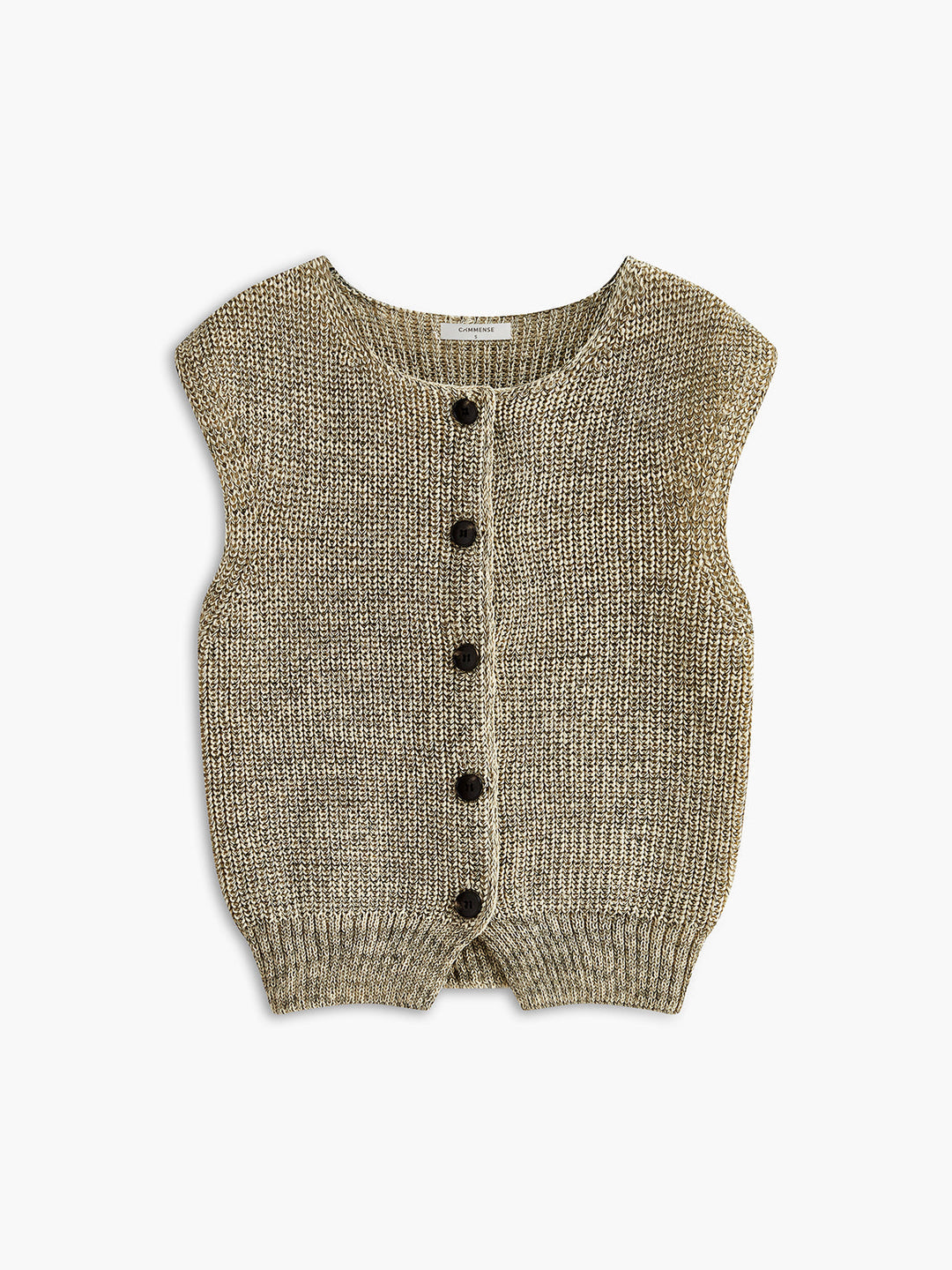 Kontrast Düğmeli Kroşe Yelek Kayısı