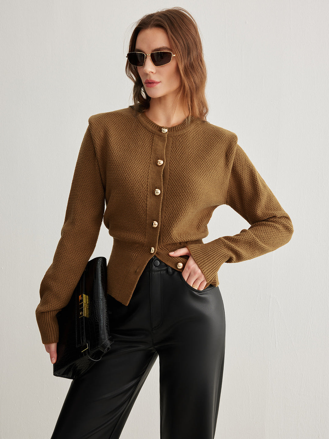 Nostaljik Düğmeli Hırka Koyu Kahverengi