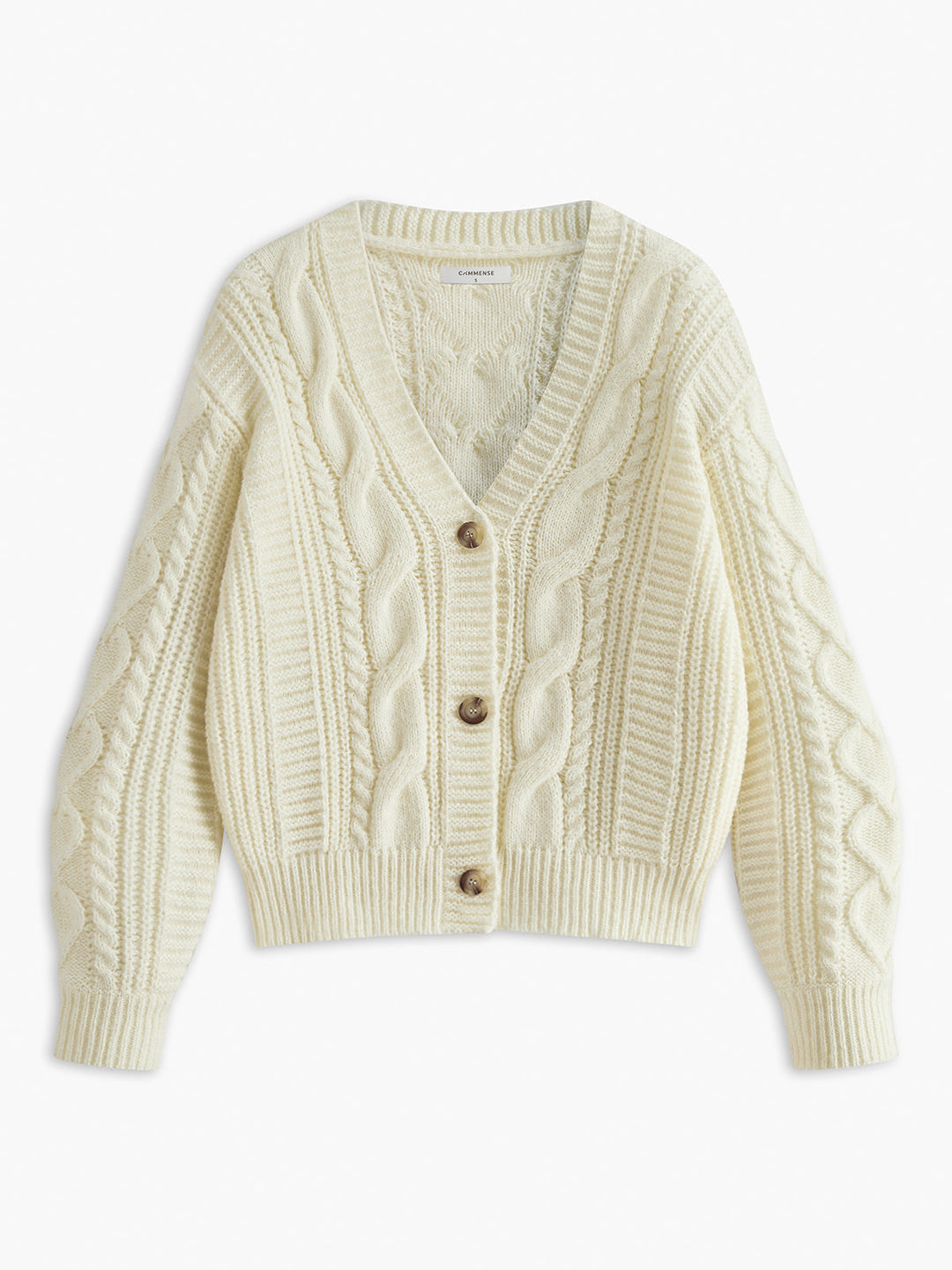 V Yaka Düğmeli Kablolu Hırka Beyaz