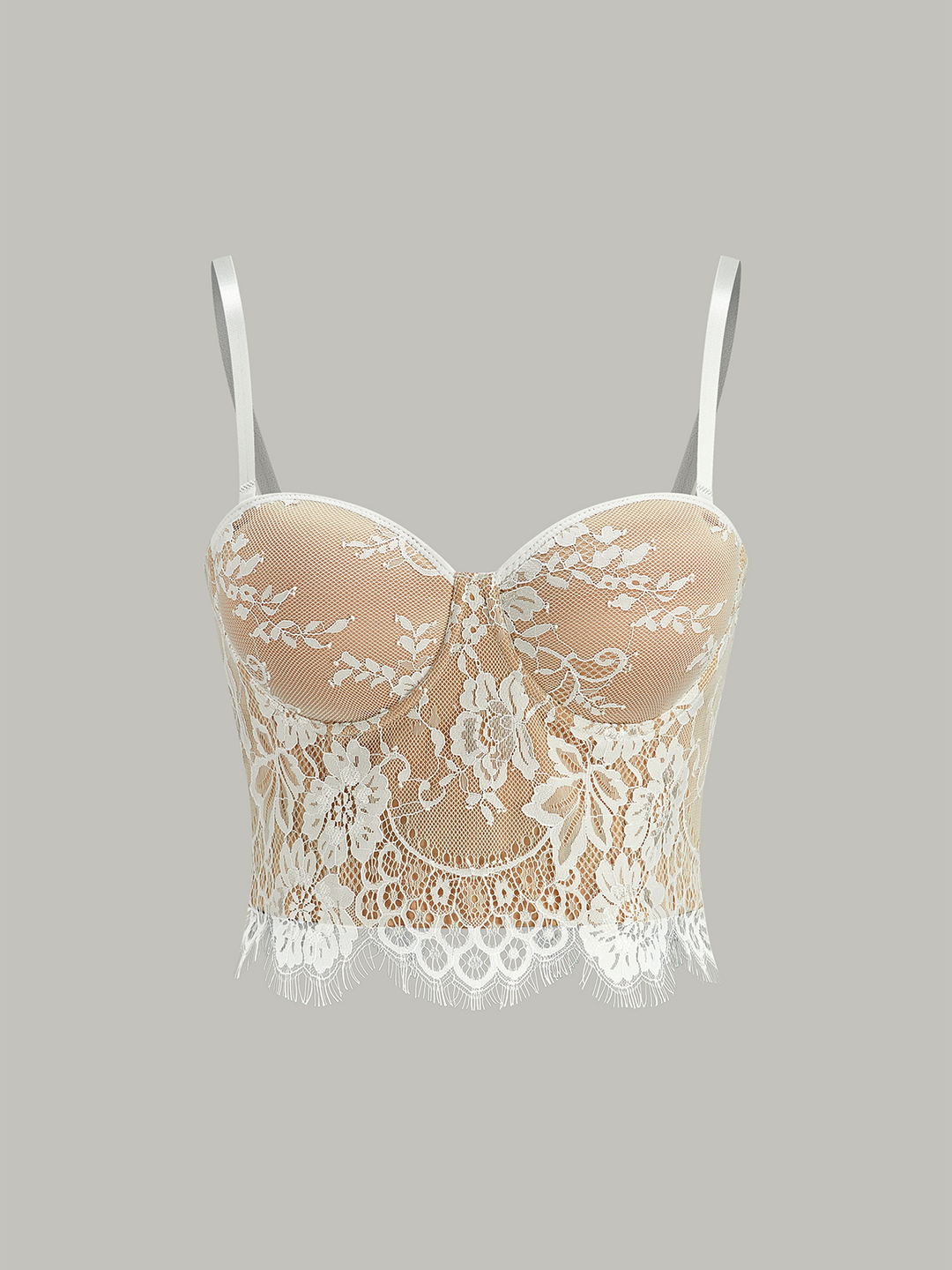 Yarı Şeffaf Dantel Kenarlı Korse Üst Ten Rengi