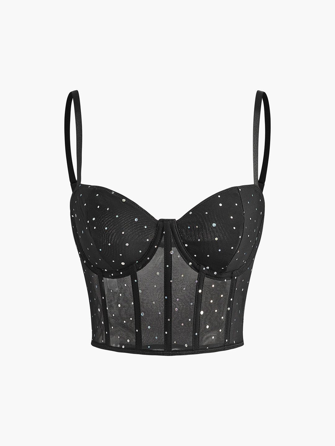 Yarı Şeffaf Fileli Puantiye Korse Üst Siyah