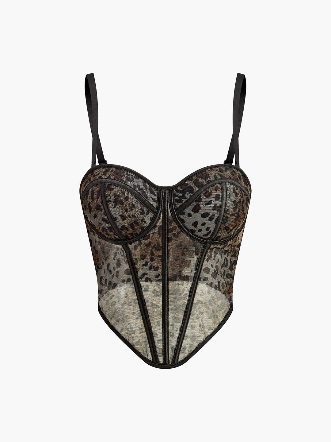 Leopar Desenli İnce Askılı Yarı Şeffaf Korse Kahverengi