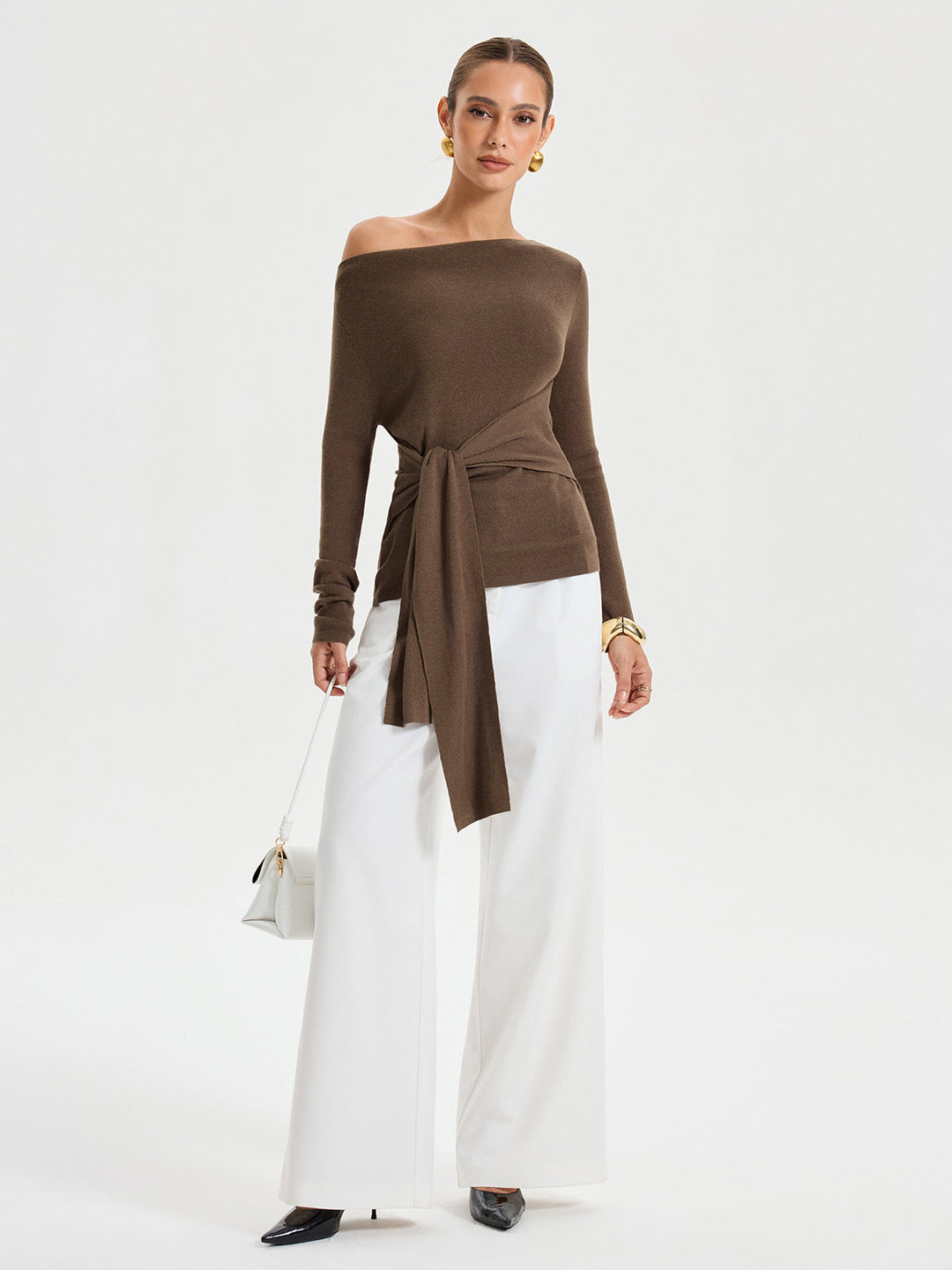 Geniş Yaka Asimetrik Bluz Koyu Kahverengi