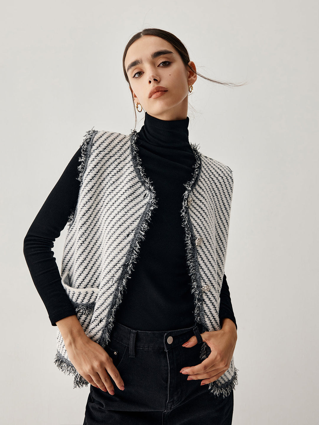 Düz Yaka Asimetrik Düğmeli Yelek Beyaz