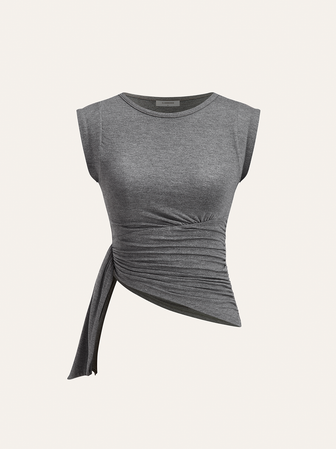 Fırfırlı Asimetrik Kenarlı Kolsuz Üst Gri