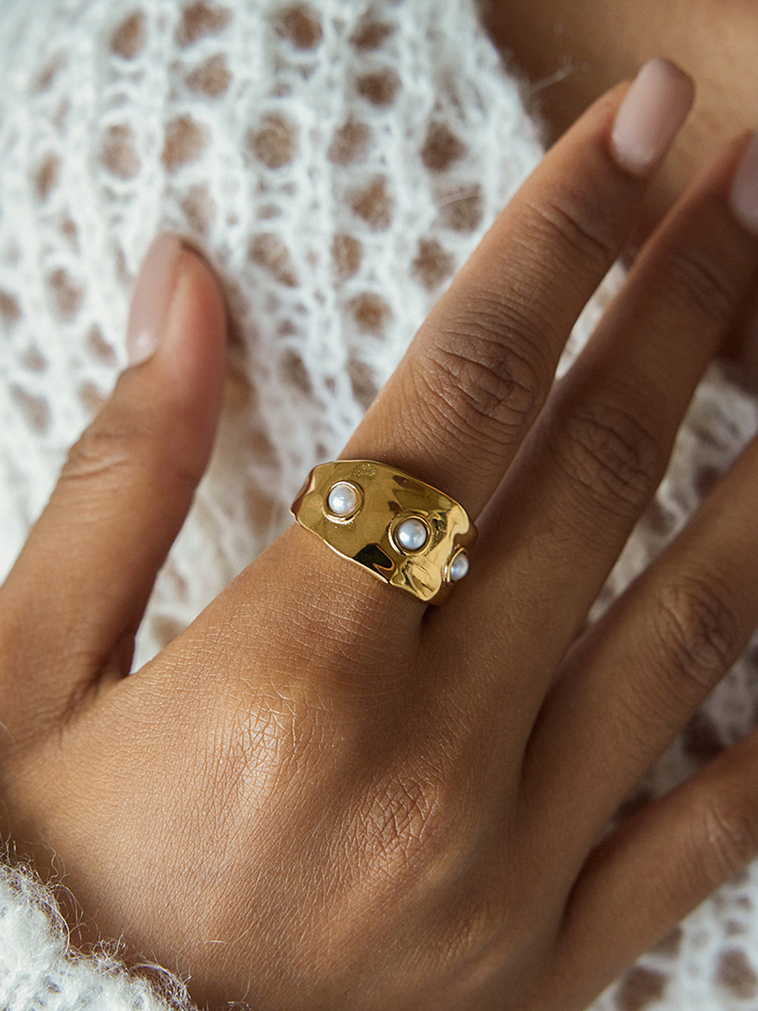 İncili İfade Yüzüğü ve Çiçek Aksesuarları Seti Altın