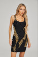 Venelit'in zarafet ve güç hissini aynı anda taşıyan bu özel parça, Astraea Altın Boncuk Bodycon Mini Elbise ile cesur bir ifade oluşturmanıza olanak tanır. Bu göz alıcı siyah elbise, zarifçe aşağıya doğru akan karmaşık altın boncuklar ve parlak detaylarla süslenmiştir. Vücuda oturan silueti, doğal kıvrımlarınızı vurgularken, özenle yerleştirilmiş boncuk işçiliği lüks bir dokunuş katar. Göz alıcı bir akşam etkinliği veya gece dışarı çıkmak için mükemmel olan bu elbise, modern zarafeti çarpıcı detaylarla bir araya getirerek tüm bakışları üzerinde toplar.