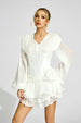 Venelit'in zarafetini ve modern çizgisini yansıtan bu tasarım, kendinizi güçlü ve özel hissetmenizi sağlar. Şıklığınızı artırın: Christy Beyaz Korse Mini Elbise ile. Romantik detayları modern yapı ile harmanlayan bu elbise, şeffaf balon kollar, V yaka ve korse tarzı bir bedene sahiptir. Volanlı etek ve dekoratif çiçek, eğlenceli ama bir o kadar da şık bir dokunuş ekleyerek partiler, akşam yemekleri veya benzersiz ve şık bir hava sergilemek istediğiniz her türlü etkinlik için mükemmel hale getirir.