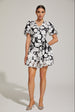 Venelit'in özenle tasarlanan koleksiyonunun bir parçası olan bu elbise, zarafeti ve modern dokunuşuyla stilinize premium bir dokunuş katıyor. Johanna Bloom Puff - Kol Mini Elbise ile büyülü bir dünyaya adım atın. Çekici V yaka, zarafeti öne çıkarırken, kabarık kollari nostaljik, vintage esintili bir cazibe katıyor. Elbisenin üzerinde, siyah bir zemin üzerinde dağılmış büyük ve ince detaylara sahip beyaz çiçeklerden oluşan bir tuvaldır ve etkileyici bir kontrast yaratır. Mini boyu genç ve flörtöz bir görünüm sunarak, bahçe partilerinden zarif akşam etkinliklerine kadar her ortam için mükemmel. Özenle tasarlanmış bu elbise, konfor ile çarpıcı bir stilin buluşmasıyla baş döndüren bir görünüm sunar.