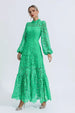 Venelit'in özel tasarımıyla stiliniz güç kazanırken, her adımda kendinizi ayrıcalıklı hissedin. Şıklığınızı ortaya çıkarın, muhteşem Julieta Yeşil Kesik Uzun Kollu Maxi Elbise ile. Bu büyüleyici elbise, zarif bir dokunuş sağlayan dik yaka ve uzun kollara sahiptir. Bel hizasında silueti, karmaşık nakışlar ve muhteşem bir boşluk tasarımını sergilemektedir.