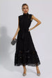 Venelit'in zarafet dolu tasarımıyla sunulan Siyah Kolsuz Boş Maxi Elbiseniz, stilinizi öne çıkaran premium bir deneyim sunar. Dikey yaka, kolsuz ve boş desen tasarımı bu elbiseye zarafet katıyor. Beldeki lastik, dantel detayları, inci süslemeleri ve vücuda oturan silueti bu maxi elbiseyi tamamlıyor. Aile toplantısı veya hafta sonu partisiyla topuklu ayakkabılarla giyin.