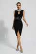 Venelit'in zarafet ve güç hissini taşıyan bu özel tasarım ile gardırobunuza premium bir dokunuş katın. Venelit'in Siyah Elmas Süslemeli Bandaj Midi Elbisesi'ni sunuyoruz. Bu göz alıcı ve baştan çıkarıcı yüksek yakalı elbise, beldeki zarif dantel detayları ve özenle tasarlanmış ön yırtmaç ile stilinizi yükseltmek ve dikkatleri üzerinize çekmek için idealdir. Elmas süslemeler, lüks bir dokunuş katar. Hassas işçilik ve ayrıntılarla üretilen bu elbise, zarafeti ve duyusallığı zahmetsizce bir araya getirir.