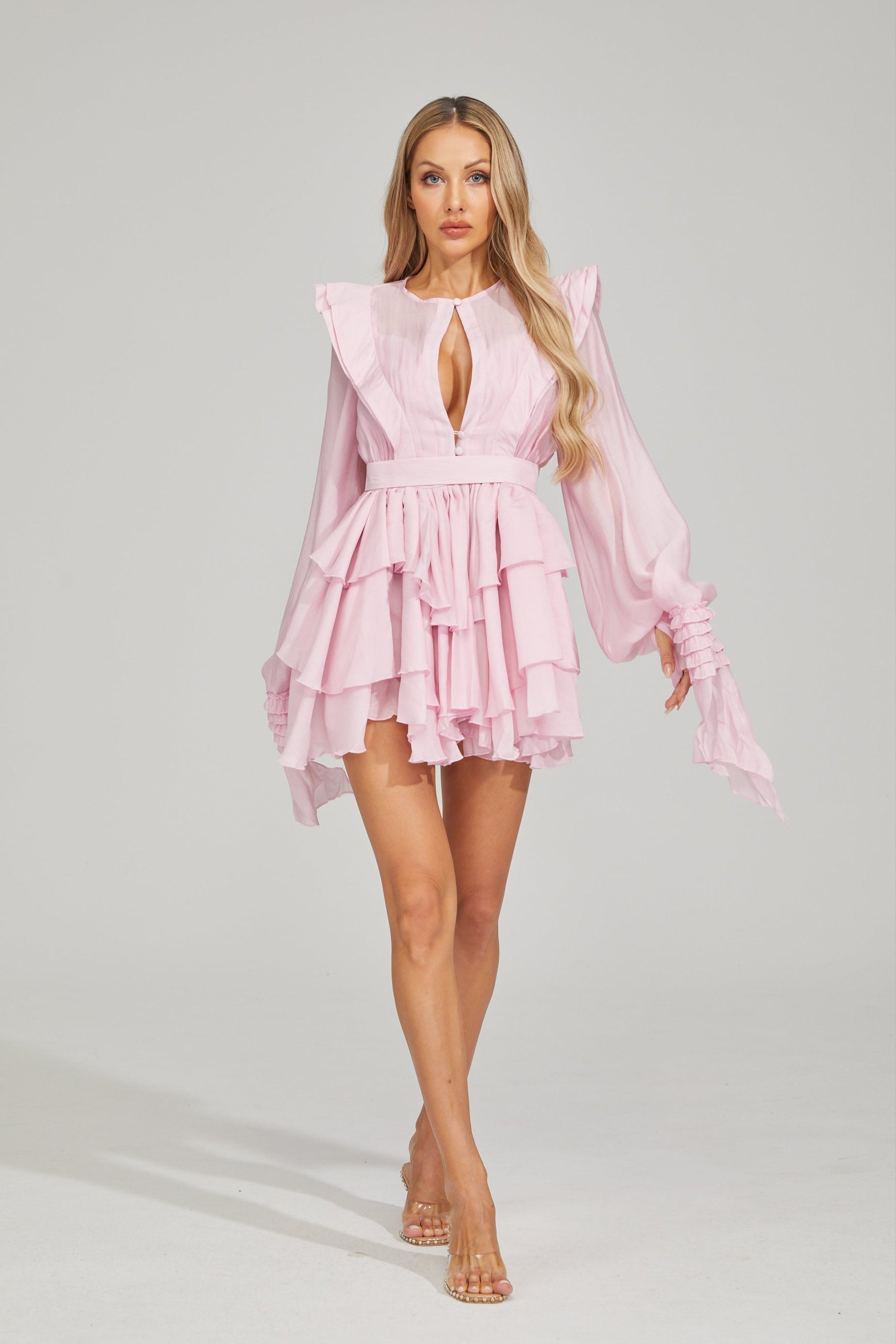 Venelit'in zarafetini yansıtan bu parça ile stilinize premium bir dokunuş katın. Venelit'in Volanlı Şık Mini Elbisesiyle yumuşak, romantik bir cazibeye adım atın. Bu zarif ama eğlenceli mini elbise pastel pembe tonunu taşıyan zarif ve hoş bir görünüm sunar. Elbise, etek uçlarında ve kollarında dramatik volan detaylarıyla siluete bir dokunuş eğlence ve doku katmaktadır. Yaka kısmındaki anahtar deliği açılışı tasarımını yükselterek bir cazibe ipucu sunar. Yapılandırılmış bel ve akışkan etek, zarif bir kadınsı şekli korurken konfor sağlar; bu, hem gündelik hem de şık bir etkinlik için mükemmeldir.