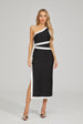 Allegra Monokrom Kenar Asimetrik Midi Elbise ile çarpıcı bir ifade oluşturun. Bu şık siyah elbise, vücuda çapraz olarak uzanan temiz beyaz detaylarla tamamlanan cesur tek omuz tasarımıyla dikkat çekiyor ve düzleştirici bir etki yaratıyor. Zarif yüksek yırtmaç, biraz baştan çıkarıcılık katarken, renk kontrastı modern ve yüksek moda bir görünüm sunuyor. Akşam etkinlikleri, kokteyl partileri veya şık akşam yemekleri için mükemmel olan bu elbise, keskin hatları çağdaş zarafetle birleştirerek hem cesur hem de zamansız bir görünüm sağlıyor.