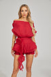 Venelit'in zarafetini taşıyan bu parça, gardırobunuza premium bir dokunuş katacak. Nolwenn Kırmızı Rüya Volanlı Mini Elbise ile cazibenizi artırın. Bu eğlenceli ama bir o kadar da şık parça, omuzdan askılı bir yaka ve belde dramatik bir sargı bağı ile sıkılaştırılmış rahat bir üst kısmı ile dikkat çekiyor; romantik bir gül detayı ile tamamlanıyor. Katmanlı volanlı şortlar hareket ve şıklık katarken, zengin kırmızı tonu cesur bir sofistike sunuyor. Bahçe partileri, randevu geceleri veya festivaller için mükemmel olan bu elbise, kadınsılığı, eğlenceyi ve güçlü bir özgüveni şık bir şekilde bir araya getiriyor.