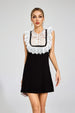 Warren Siyah Dantel Mini Elbisesi ile gardırobunuza zarafet katın; Fransız esintili bir estetik sunuyor. Kolsuz, renk bloklu tasarımı, zarif dantel üst kaplama, ince taş detayları ve zayıflatıcı, şık bir siluet için şık bir yaka ile öne çıkıyor.
