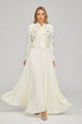 Venelit’in zarafetini üstünüze taşıyan özel koleksiyonun en prestijli parçası ile tanışın. İçsel zarafetinizi Vérène Süslemeli Plise Elbise Seti ile ortaya çıkarın. Bu ışıltılı takım, akışkan bir fildişi plise maxi elbiseyi, gümüş çiçek işlemeleri ve parıldayan kristal detaylarla muhteşem bir şekilde süslenmiş kısa bir ceketle bir araya getiriyor. Yumuşak bir kravat, vintage bir feminenlik dokunuşu eklerken, hafif kumaş her adımda zahmetsizce kayar. İster büyük bir kutlamaya katılın, ister akşam etkinliğinde dikkat çekin, bu görünüm zamansız zarafet ve göksel cazibenin bir övgüsüdür.