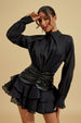 Victoria Fırfırlı Mini Elbise ile cesur bir ifade yakalayın. Bu siyah mini elbise, zarif düğme detayları ve sofistike bir dokunuş için hacimli uzun kollara sahip yüksek yaka tasarımıyla dikkat çekiyor. Sıkılaştırılmış suni deri fırfırlı bel, siluetinizi vurgularken modern bir hava katan bir dokunuş sunuyor. Katmanlı fırfır etek ucu hareket ve eğlenceli bir çekicilik ekleyerek bu elbiseyi hem şık gündüz etkinlikleri hem de göz alıcı akşam davetleri için ideal bir seçim haline getiriyor.